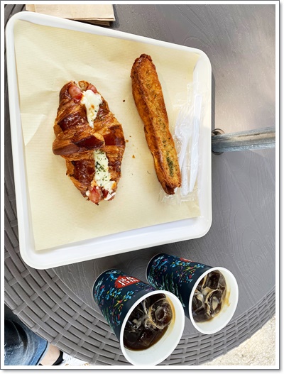 소시지가 들어간 크로와상이랑 마늘바게트 그리고 아메리카노를 주문했는데요