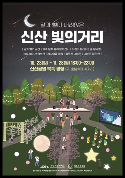 신산공원은 제주특별자치도 제주시 일도 2동에 위치한 공원입니다 1944년 10월 27일 조성되었으며 한라산 기슭에서 흘러내린 산지천이 바다와 만나는 곳에 자리 잡고 있으며 벚나무 단풍나무 느티나무 팽나무 등 40여 종 5만여 그루의 나무가 울창한 숲을 이루고 있습니다 운동장 분수대 놀이마당 체력단련 시설 등 각종 편의 시설이 갖추어져 있고 야외 음악당에서는 음악회 연극 공연 등 문화행사가 자주 열린다고 합니다